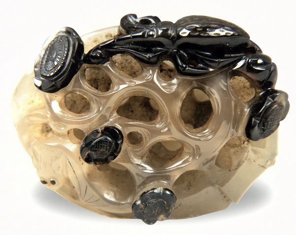 Agate pendant sculptured with grass and insect,made during Emperor Qianlong’s reign of the Qing Dynasty