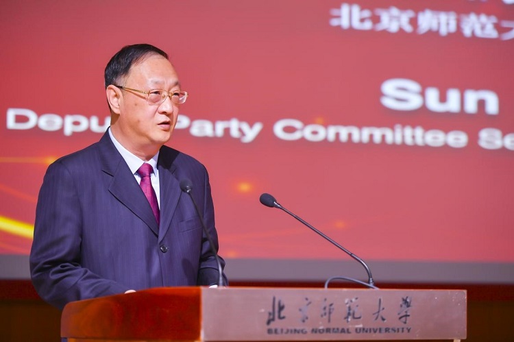 Sun Hongpei, deputy secretary of the Party committee at Beijing Normal University (BNU), speaks at the Looking China Golden Lenses Awards presentation ceremony. (Photo courtesy of BNU)