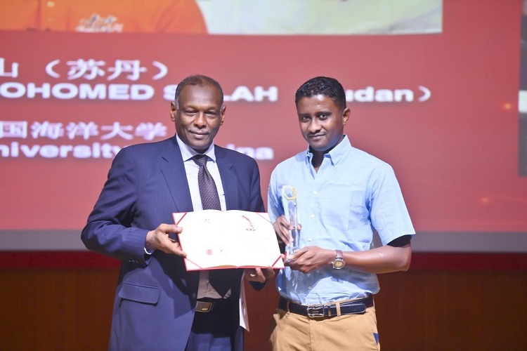 Sudan’s Ambassador to China Omer Mohamed Ahmed Siddig (left) presents an award to director of an award-winning work. (Photo courtesy of BNU)