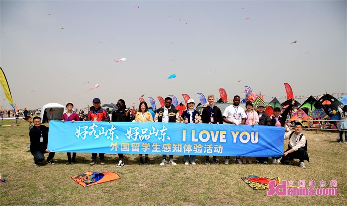 International students from Russia, Nigeria, Uganda and other countries were invited to the 40th Weifang International Kite Festival to experience kite flying.