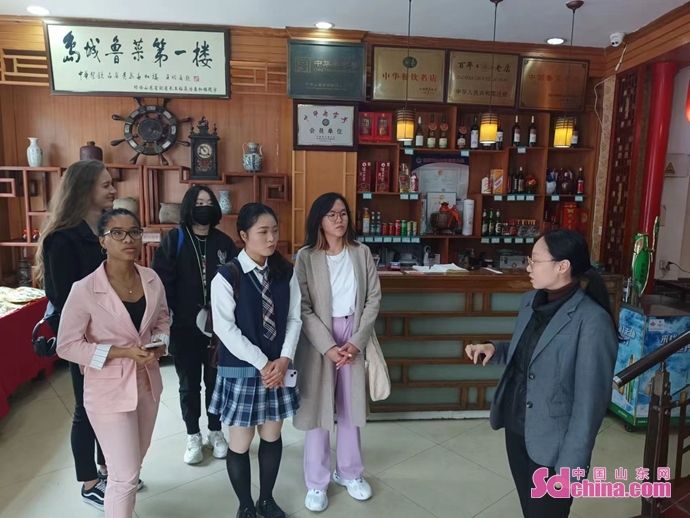 Recently, the “Friendly Shandong, Remarkable Shandong ‘I love you’” activity invited 7 international students from the College of International Education of Qingdao University from Russia, South Korea and other countries to visit the century-old Chunhelou Restaurant to taste the delicious Shandong cusine and enjoy Chineese intangible cultural heritage.