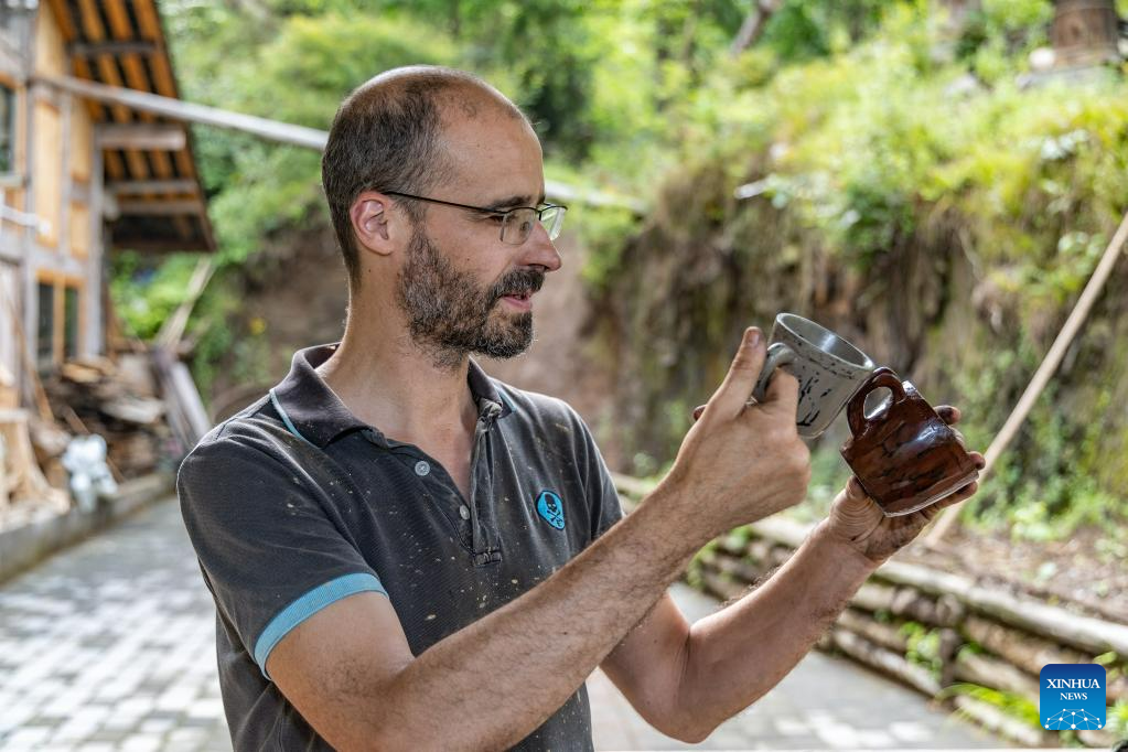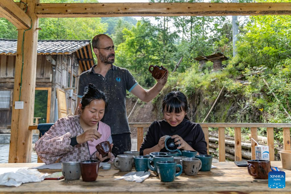 Vincent Cazeneuve works at his studio in Songbai Village of Beiping Town, Chengkou County, southwest China's Chongqing Municipality, May 29, 2023. (Xinhua/Chu Jiayin)