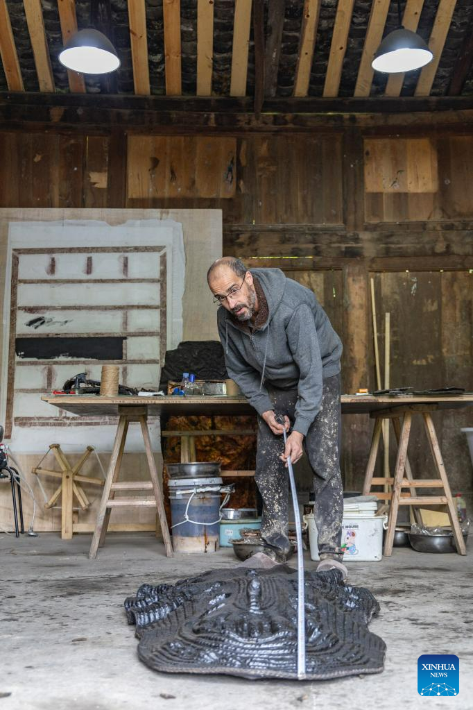 Vincent Cazeneuve works at his studio in Songbai Village of Beiping Town, Chengkou County, southwest China's Chongqing Municipality, May 29, 2023. (Xinhua/Huang Wei)
