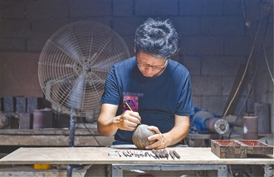 "I was obsessed with the art form when I saw it for the first time," said Ke, who is in his 50s. He went to work at a coconut shell carving craftwork factory in 1994, and, after learning the skills from a master for 10 years, he started to carve on his own. Now, the man is a provincial-level inheritor of such an intangible cultural heritage.