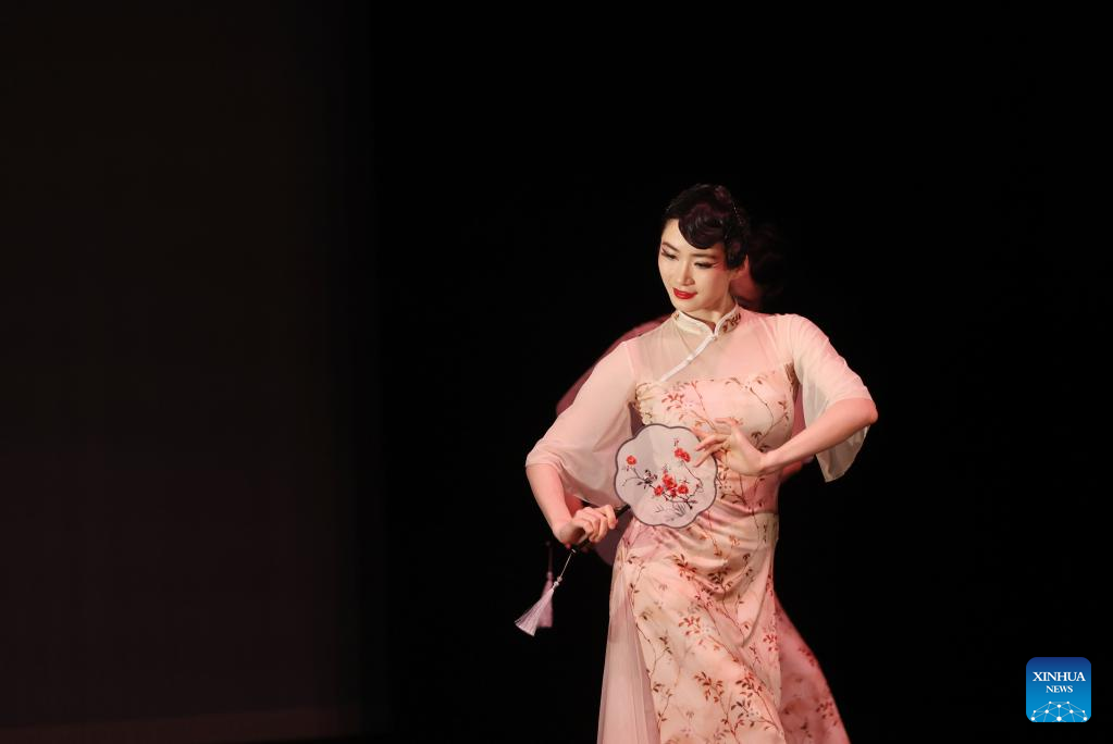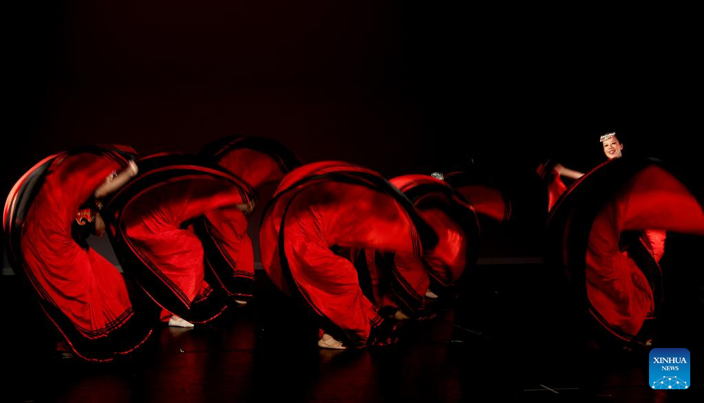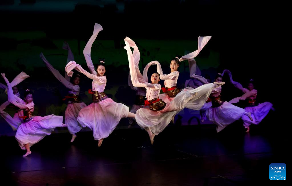 Artists perform during the Silk Road Dance Festival in London, Britain, July 1, 2023. A Chinese dance show was held in east London on Saturday evening, offering the local audience a sensory cultural feast. (Xinhua/Li Ying)