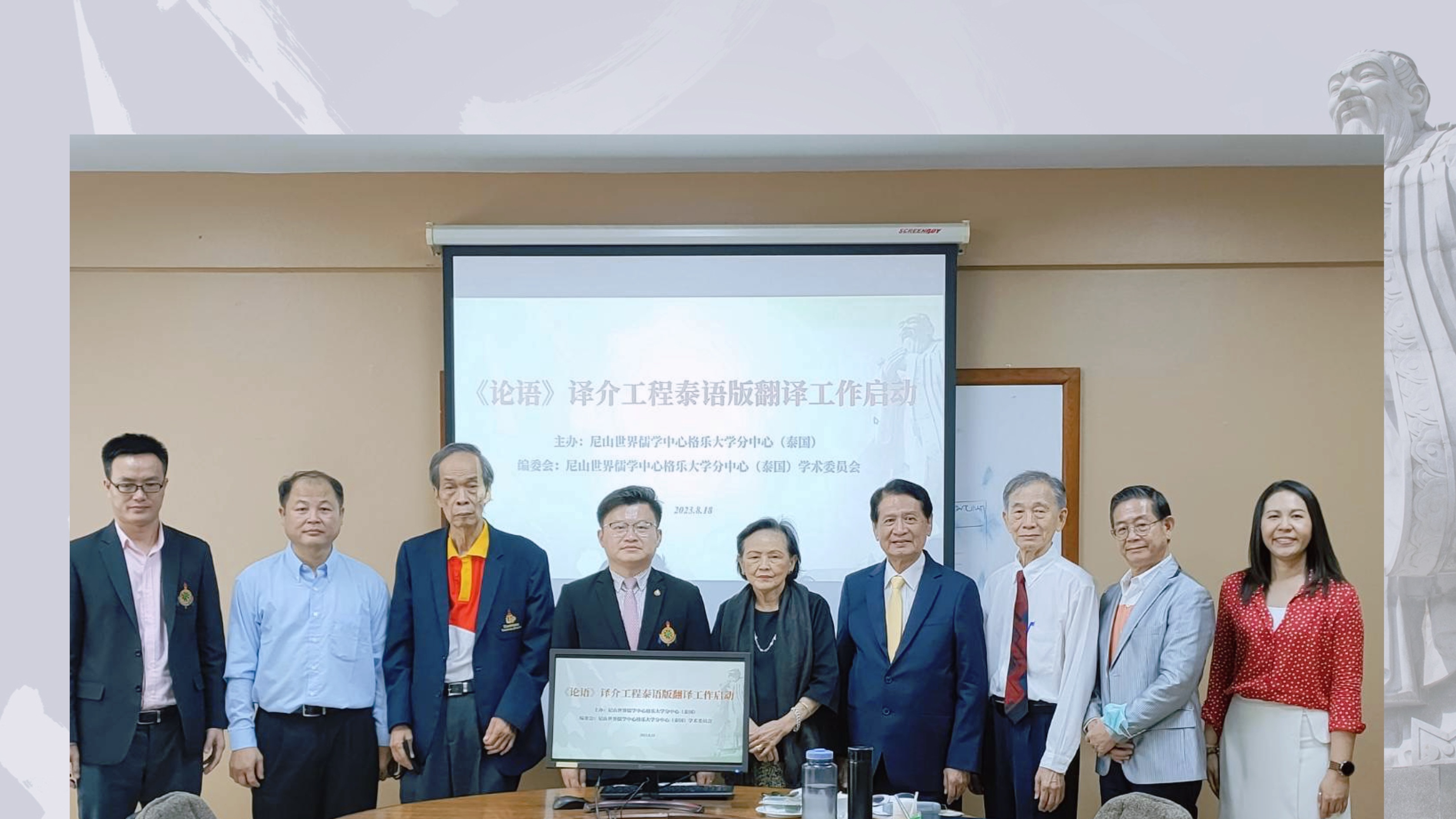 On the morning of August 18, the Translators' Symposium on the Translation and Promotion Project of the Analects of Confucius for Belt and Road Countries (Thai Version) was held at Krirk University, Bangkok, Thailand, marking the official commencement of this translation process.