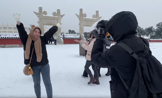 The Temple of Heaven was wrapped in a “silver blanket” on that snowy day. Immersed in the beauty of the heavy snowfall, the students took out their phones to capture this beautiful moment.