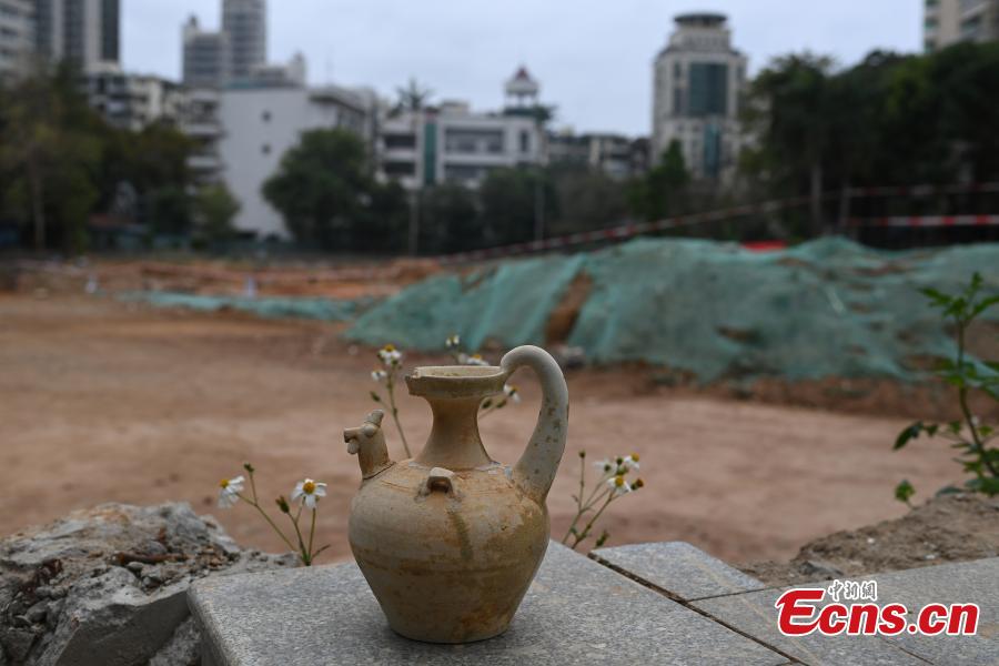A cultural relic is discovered from an ancient tomb in Guangzhou, south China's Guangdong Province, Dec. 19, 2023. (Photo: China News Service/Chen Chuhong)