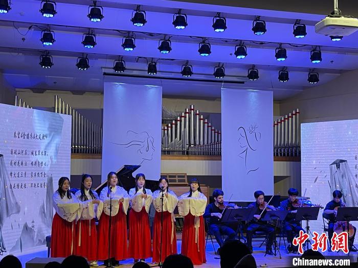 The performance was divided into four acts, featuringpoems such as "Guan Ju", "Spring Looking", "Missing the North in Night Rain ", and "Spring River Flower Moonlit Night" to connect the stories of ancient men and women's first encounter, separation, longing, and reunion. In addition to ethnic instruments such as pipa, erhu, and guzheng, violin, piano, other instruments are also deployedas accompaniment. At the same time,poetry recitation, Kunqu opera performance, and solo singing were also staged,making it a cross-border performance that blends East and West and connects ancient and modern times.