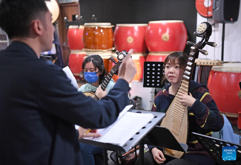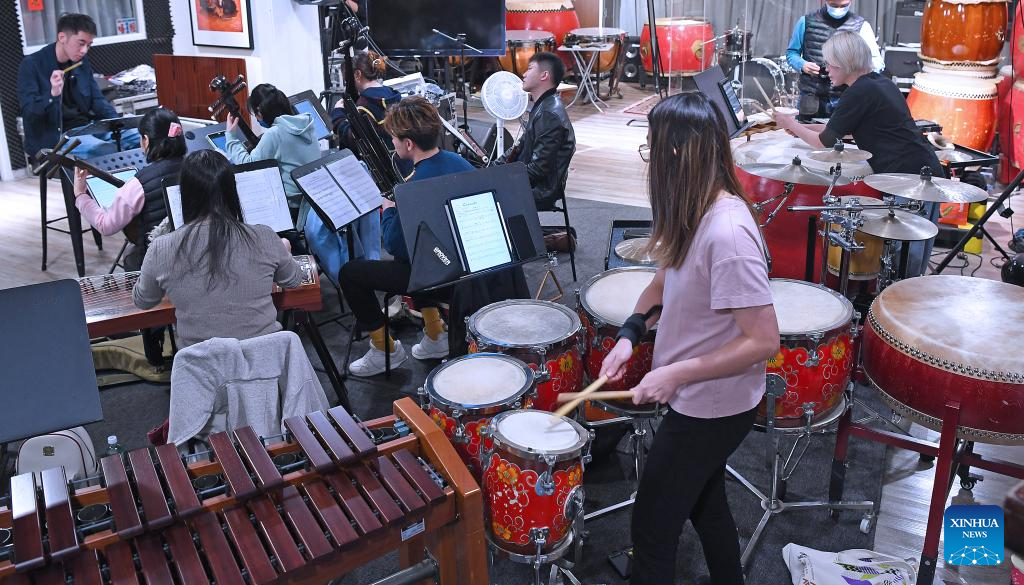 Members of the Hong Kong Gaudeamus Dunhuang Ensemble rehearse in Hong Kong, south China, Dec. 18, 2023. (Xinhua/Chen Duo)