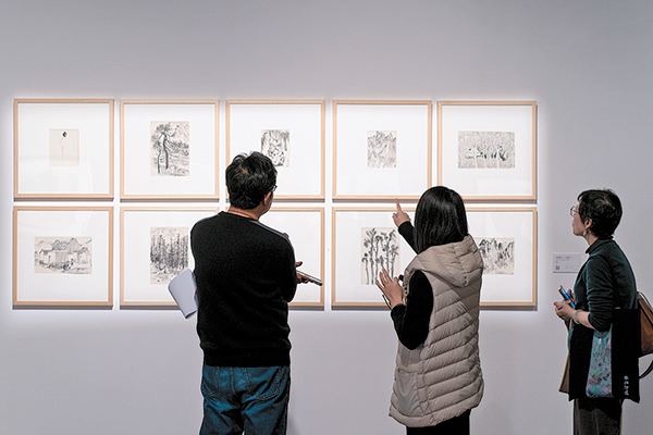 Visitors at the exhibition featuring art masters Wu Guanzhong and Lin Fengmian.[Photo by Gao Erqiang/China Daily]