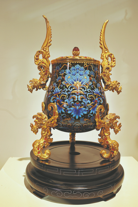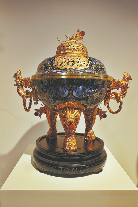 Items in the collections of Beijing's Palace Museum and New York's Metropolitan Museum of Art offer a source of inspiration for modern cloisonne artworks. JIANG DONG/WANG KAIHAO/CHINA DAILY