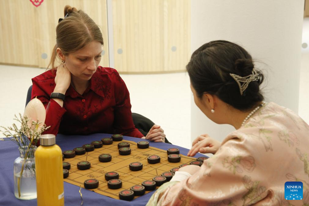 Local people practice Chinese chess in Oslo, capital of Norway, on April 20, 2024. A series of activities have been held in Norway to celebrate the United Nations Chinese Language Day, attracting a large number of participants. (Xinhua/Zhang Yuliang)