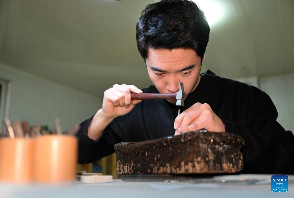 Ma Sai, born in the 1990s, has devoted himself to improving the skills of Ma's Filigree Mosaic art, a city-level intangible cultural heritage in north China's Tianjin Municipality.