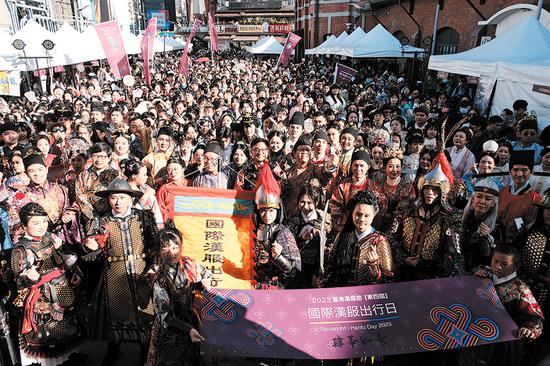 Hanfu lovers gather during an annual festival for the traditional Chinese attire in Hsimenting, a popular commercial area in Taipei, Taiwan, in November last year. (Photo provided to CHINA DAILY)
