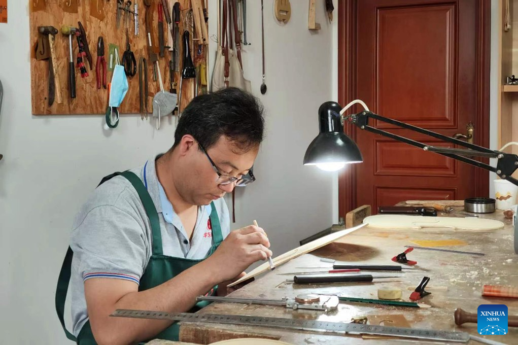 This photo taken on July 1, 2024 shows Chen Fengjun working at his workshop in Donggaocun Town, Pinggu District, Beijing, capital of China. (Xinhuanet/Liu He)