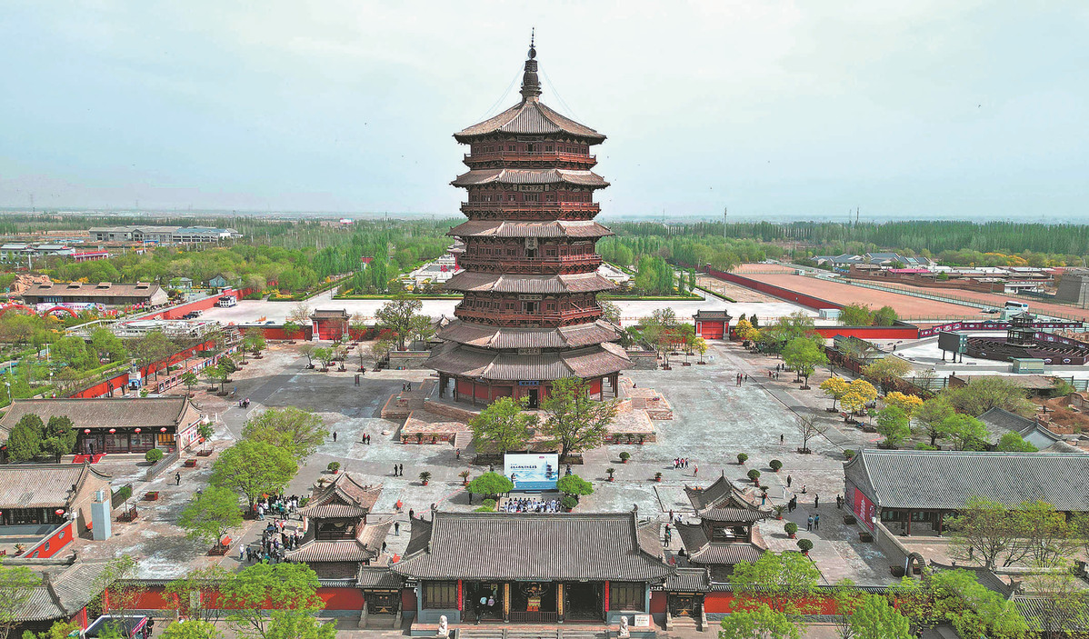 The Sakyamuni Pagoda, also known as the Yingxian Wooden Pagoda, features centuries-old plaques written by renowned calligraphers and emperors. (ZHU XINGXIN/CHINA DAILY)