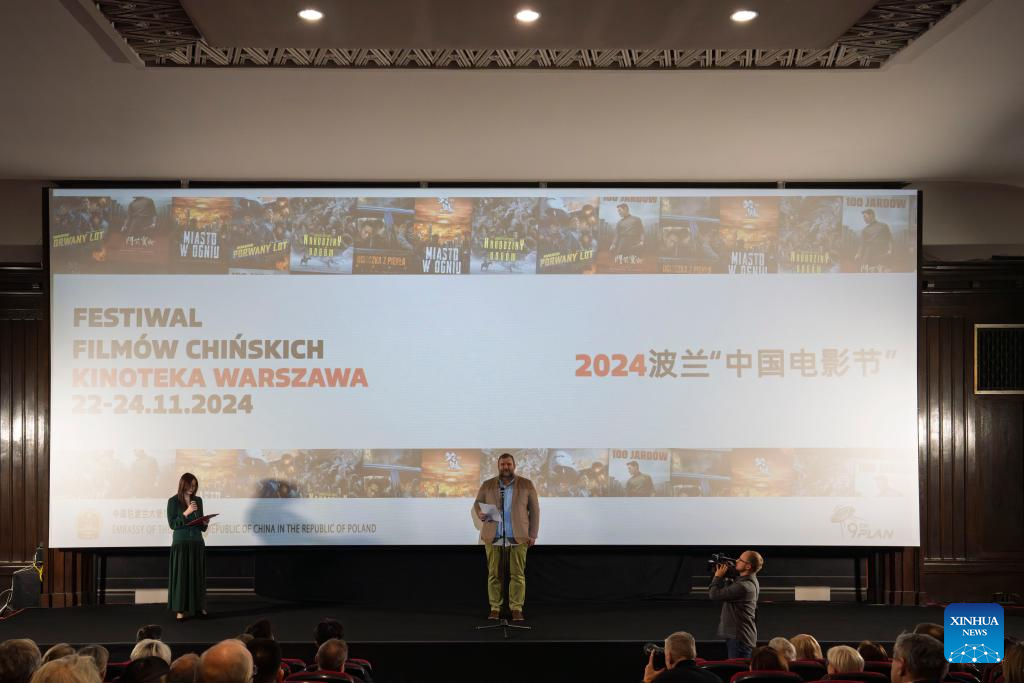 People watch Chinese film "Creation of the Gods I: Kingdom of Storms" during the 2024 Poland "Chinese Film Festival" in Warsaw, Poland, on Nov. 22, 2024. The 2024 Poland "Chinese Film Festival" officially commenced on Friday, with over 300 Polish guests attending the opening ceremony and watching the highly anticipated film "Creation of the Gods I: Kingdom of Storms". (Xinhua/Xia Yuanyi)