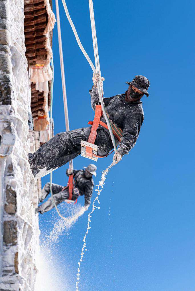 Workers paint the wall of the Potala Palace during an annual renovation of the ancient architectural complex in Lhasa, southwest China's Xizang Autonomous Region, Oct. 30, 2024. (Xinhua/Tenzing Nima Qadhup)