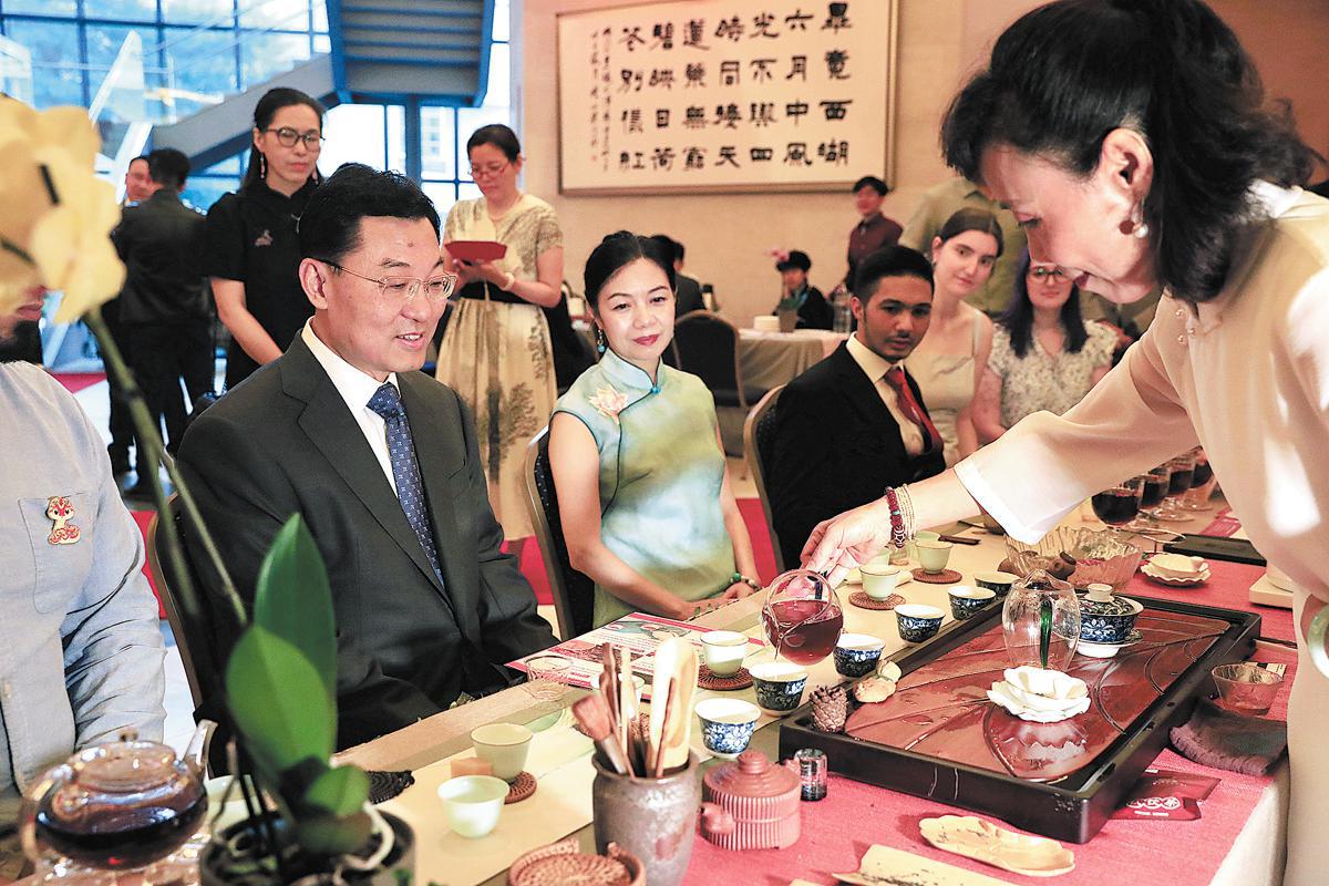 With the aroma of oolong tea wafting in the air and melodies drifting from guzheng (a traditional Chinese zither) and piano, the Chinese embassy in Washington was transformed into a stage for cultural diplomacy on Friday, and the Chinese ambassador to the United States shared not just the beverage with the guests, but also a Chinese history steeped in tea.