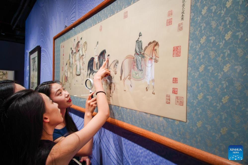 Visitors watch a hair embroidery artwork at a hair embroidery exhibition hall of a scenic spot in Dongtai City, Yancheng of east China's Jiangsu Province, June 6, 2025. (Xinhua/Xu Suhui)