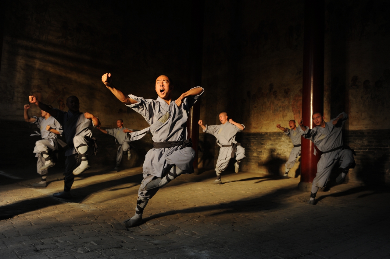 Photo shows a martial arts performance at the Shaolin Temple, a Buddhist monastery in central China's Henan Province. (People's Daily Online/Lu Yang)