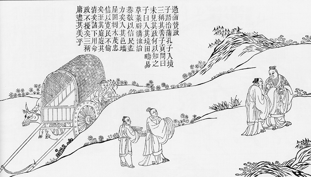 Confucius once made an on-the-spot investigation in Pu county, where his disciple Zilu was governing. As soon as he entered Pu county, Confucius praised on his governance for three times. Another disciple Zigong asked, "How do you know that before you see his political performance?" Confucius said, "As soon as I entered the county, I saw green crops and vegetables, people operating in the fields, and many people digging deep ditches. It could be seen that Zilu had made a lot of efforts to organize people in production. He was able to do so because he has prestige among the people. When I entered the city, I saw that the people lived in solid houses in neat order. And when I entered the government office, I saw that all his subordinates obeyed orders and respected him very much. Therefore, I'm pretty sure that he has done a great job in governing the county."