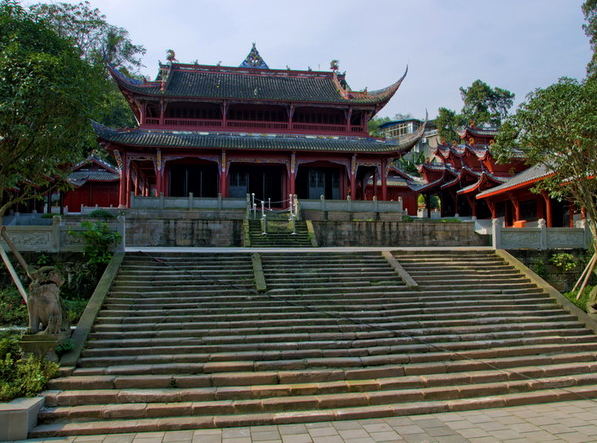The Confucian Temple inDujiangyan was the largest county-level Confucian Temple in western Sichuanprovince. It is located at the foot of Panlong Mountain, next to Wenbi Mountain on the left and Yulei Mountain on the right, covering an area of 47 mu(over 31,000 square meters).