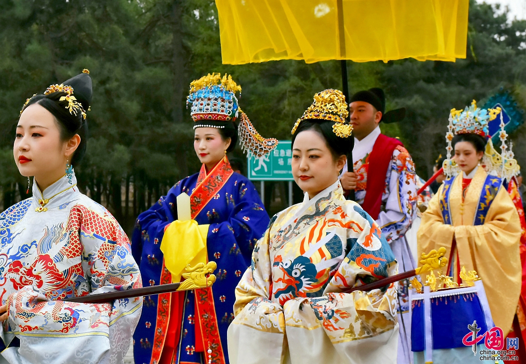 北京市昌平区の明十三陵神道風景名勝区で2日、第3回北京明文化祭りの「出警儀仗」行進が行われた。「出警入蹕図」の明王朝儀仗礼が再現された。
