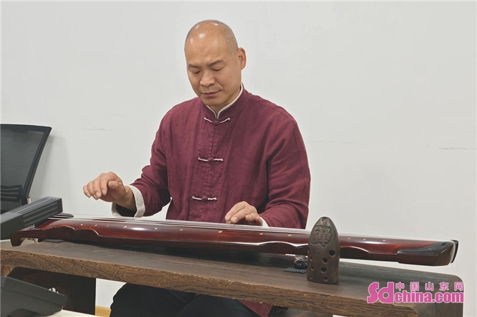 済寧市古琴学会学長の劉琪さんは現場で古琴演奏技術を展示し、この伝統的な文化芸術を日本の友人にささげた。