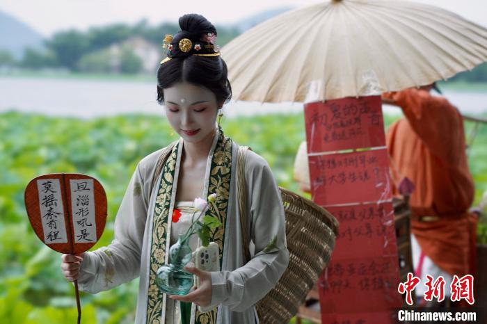 また、「私は中国の伝統衣装である漢服が大好きで、暇を見つけては漢服を着て外出し、撮影しているほか、色々なイベントも企画している。漢服を普段の暮らしの中で着ることで、多くの人にこの中国の伝統衣装を好きになってもらいたいと思っている。この公益活動をしようと思ったのは、ある時ハスの花を売る高齢の男性を目にして、きっと古代の西湖にもこんな花売りの行商人がいたのだろうと思ったことがきっかけ。古代の行商人の姿を現代都市に再現させたら、夏の西湖にロマンチックな雰囲気を添えることができて、面白いのではないかと思った」とした。