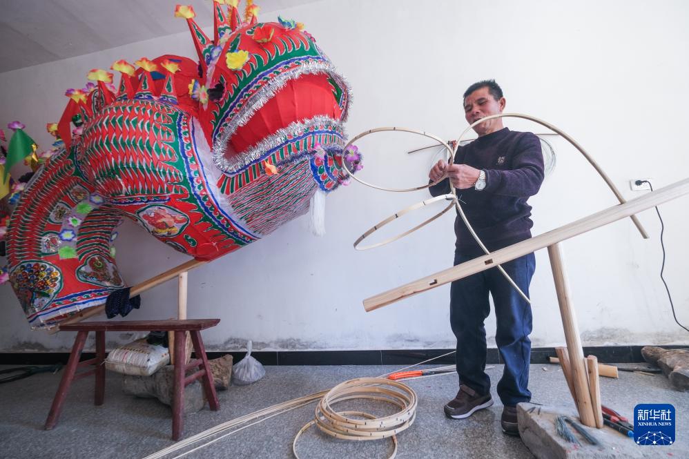 旧暦の新年が近づき、浙江省麗水市青田県の各地で龍灯作りやランタン展などが始まった。様々な形をした伝統の龍灯は、辰年の新年のめでたい雰囲気を作り出している。
