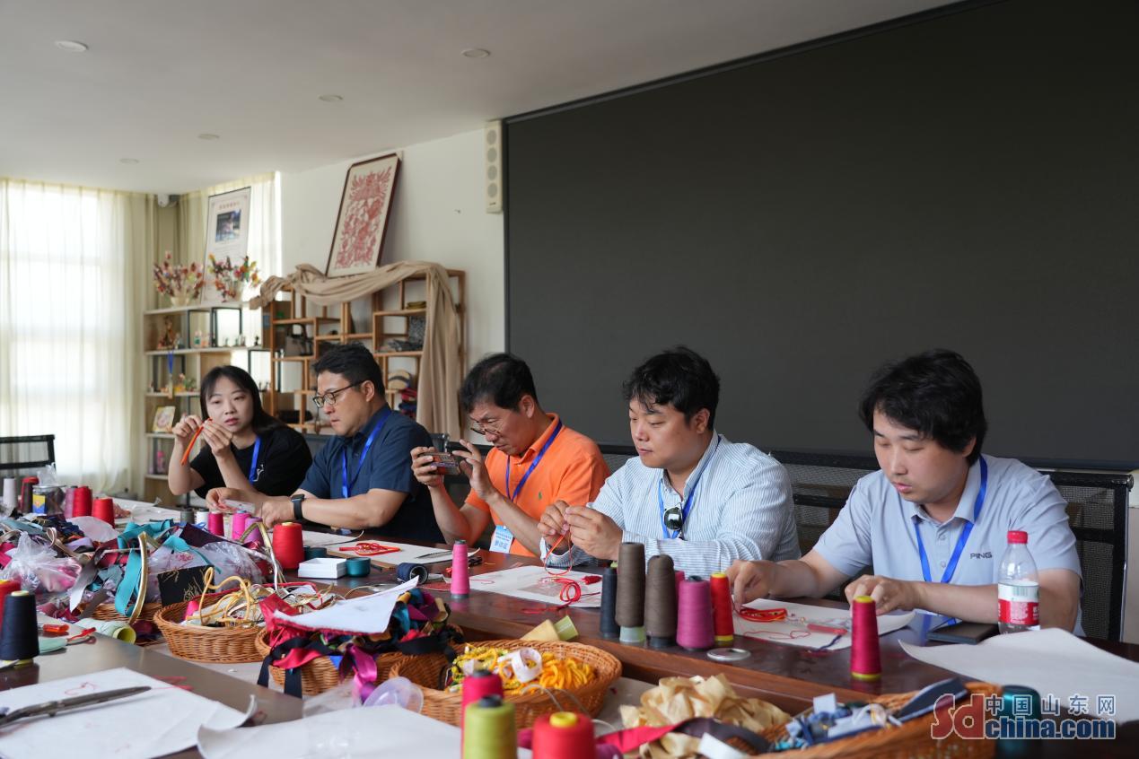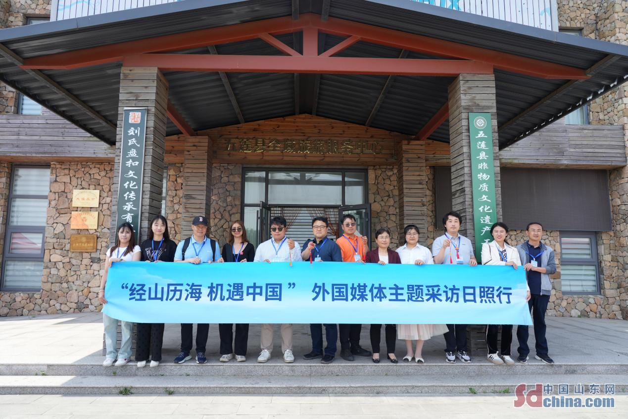 5月22日、「経山歴海チャンスの中国」外国メディア日照行イベントはドバイ、韓国の世界日報などの国家・地区からの記者たちを日照市五蓮県の劉氏盤扣非遺工坊に招き、中華伝統手工芸の美しさを味わった。