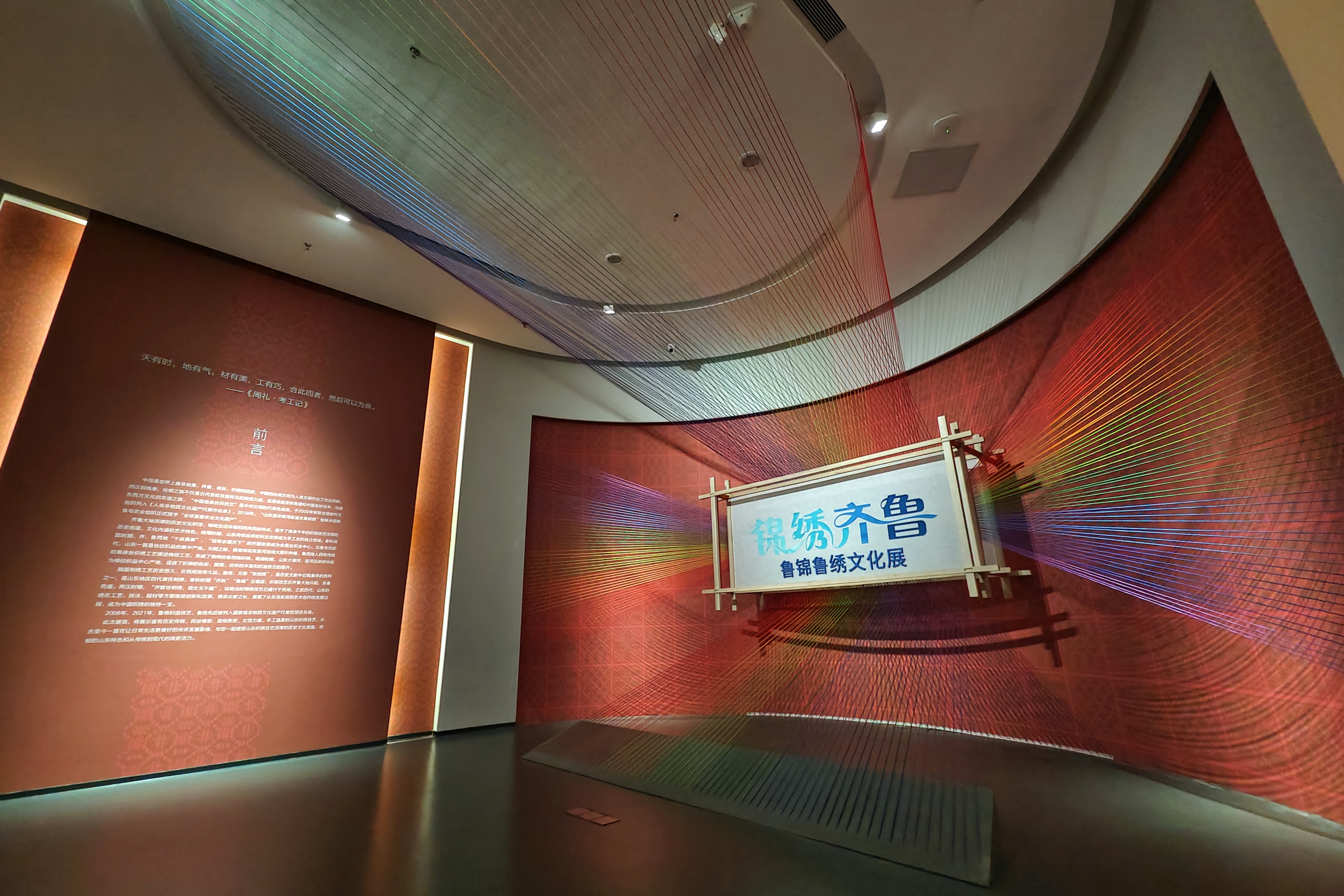 展示会場では、テキストの説明、画像の展示、デジタル化展示、インタラクティブ体験など、さまざまな方法を使って、魯錦魯繍の古今の進化、伝統から現代への革新を全方面で多角的に展示している。現場では、昔ながらの織機や手作り刺繍の体験、文化クリエイティブグッズの製作などの活動を通じて、見学者が齊魯錦繡の魅力を存分に体験できるようにしている。