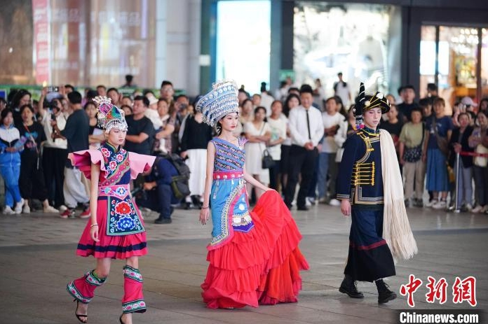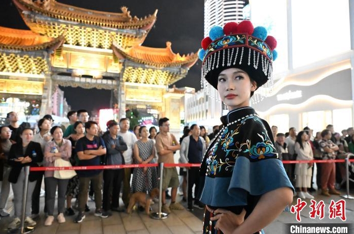 楚雄彝(イ)族の刺繍ファッションフラッシュモブショーが9月29日夜、雲南省昆明市で開催され、楚雄彝族の刺繍ファッションもつ独特な魅力が市民に披露された。このフラッシュモブショーは、まもなく開幕する「第2回楚雄ファッションウィーク」の関連特別イベントの一つとして行われた。