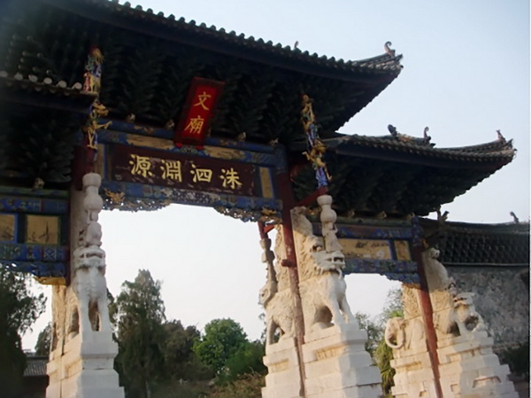 建水文廟は雲南省紅河ハニ族イ族自治州建水県城内にあり、元の至元二十二年(1285年)に建てられた。現在の雲南省が中慶(今の昆明がある所を治めた路)、大理に統治された後に建てられたもので、三番目に早く建てられた廟でもある。明清の時代の拡張を経て、敷地は76,000㎡となり、曲阜孔子廟の建築風格を模倣した広大な規模の建造物である。廟の周りは古柏が生い茂り、厳粛で雄大壮観であり、「雲南省随一の壮麗」の誉れある文廟である。