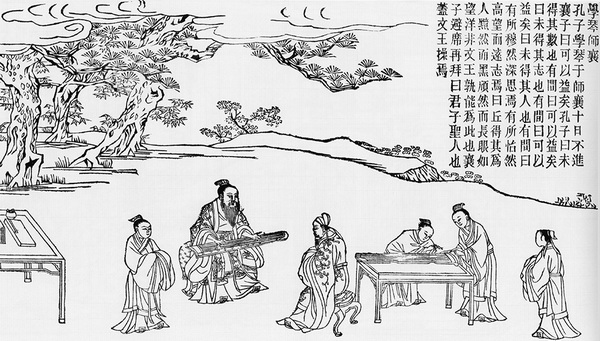 孔子は二十九歳の時、衛で師襄子より琴を学び、十日間続けて一つの楽曲を復習した。師襄子は孔子が上手に弾くと思い、何度も他の楽曲を練習するように勧めた。しかし、孔子は自身がまだこの曲の神髄を理解しておらず、曲の作者もまだ察せず、作曲者の精神や風貌も感じていないと言った。ある日、孔子はこの曲を練習した後で、身を起こし長らく窓にもたれかかり、遠くを望んでからやっと悟り、「作曲者の為人と風貌が分かったぞ!この曲は周の文王以外に作れる者はいない!」と言った。この言葉に、師襄子はすぐに立ち上がって、孔子に向かって繰り返し供手の礼をして「あなたは本当に聖人だ。この曲はまさしく「文王操」である」と言った。
