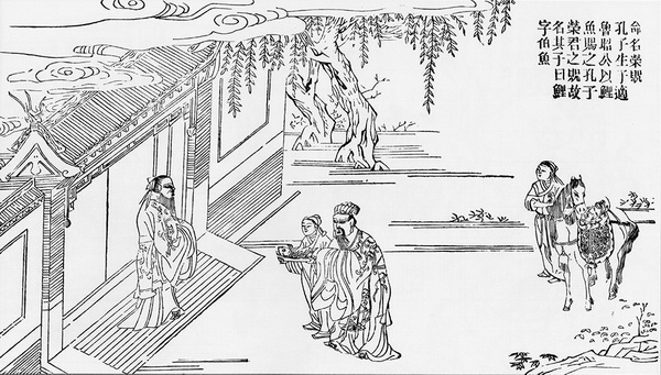 魯の昭公十年のある日、孔子の子供が生まれた。魯の昭公は孔子を敬慕していたので、大きな鯉を送り祝賀の意を表わした。孔子は鯉を受け取った後、君主の自身に対する特別な名誉だと思い、とても光栄に感じ、すぐに鯉から取って子供の名を「鯉」、字を「伯魚」とした。併せて、昭公が送った鯉をお供えし、励みとした。後に、「孔門は鯉を食べず」という習慣となった。