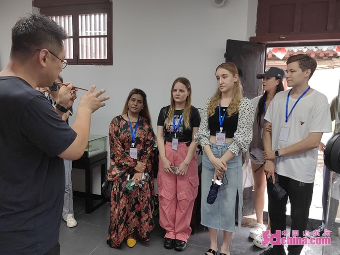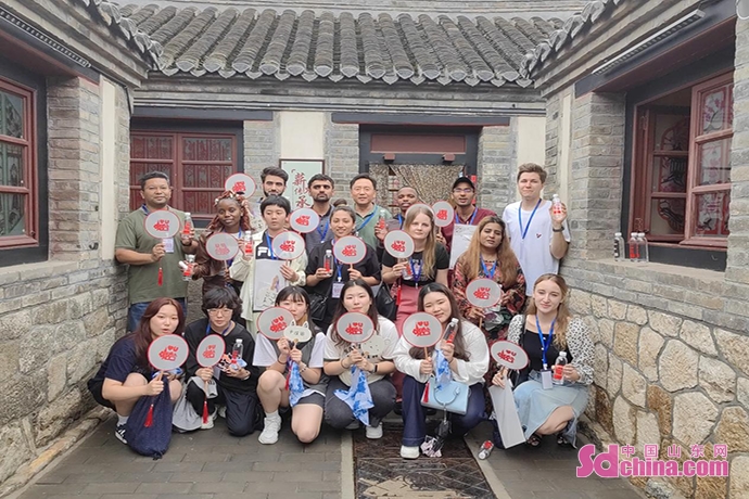 7월 13일 오후, 러시아, 한국, 프랑스, 파키스탄 등 7개국에서 온 외국인 20명이 옌타이(煙台)시 즈푸(芝罘)구 숴청리(所城裡)에서 비물질문화유산 체험을 시작했다.