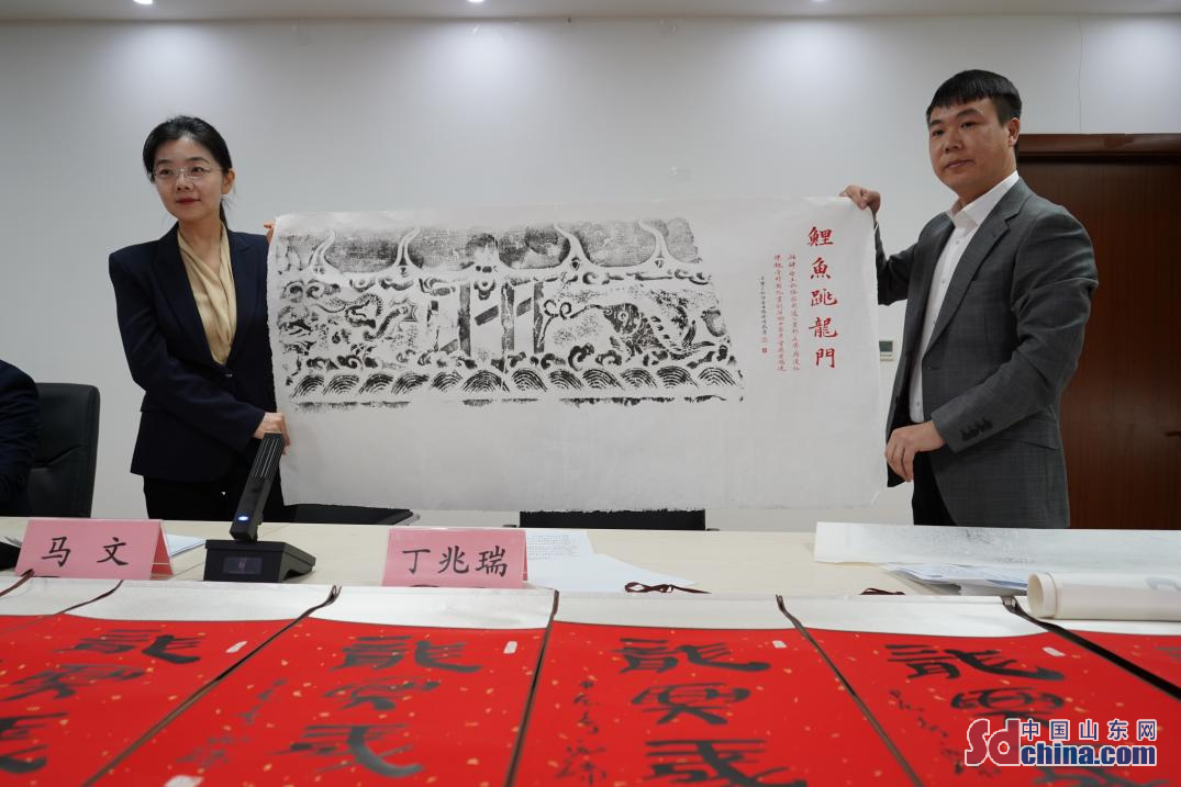 교류회에서 지닝시 중화문화촉진회 부주석, 가오신구 미술가협회 부주석 딩자오루이(丁兆瑞)는 전통서예작품을 소개하고 한폭의 예서를 써서 한국 손님들에게 새봄의 축복을 보냈다.