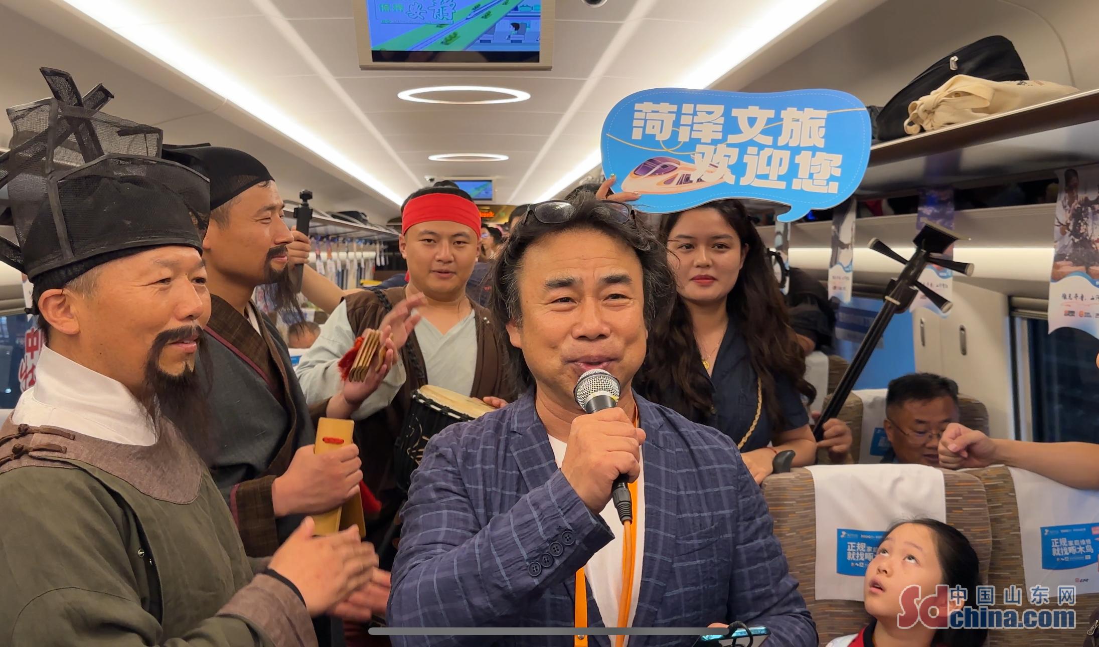 7월 18일 오전 9시 46분, G4007번 푸싱호 열차가 천천히 시동을 걸었고, 선발하는고속철도 곳곳에서 허쩌의 문화 관광 요소가 두드러졌다. 선발 열차 허쩌 문화관광객차에서 다채로운 문화 활동이 승객들을 눈을 뗄 수 없게 했다. 생동감 넘치는 수호전 상황극, 은은한 잉거와 류수 등 전통 예술 공연, 차오저우 면인, 둥밍 양곡화, 취예 공필 모란화 등 무형문화재 프로젝트의 현장 전시 공연, 그리고 판다 인형 등 눈부신 문화 창조 제품의 멋진 선보이는 승객들로 하여금 허쩌 문화의 독특한 매력을 맛보게 할 뿐만 아니라 더욱 이 여정이 농후한 문화 분위기와 명절 같은 경사스러운 분위기로 충만하게 한다.