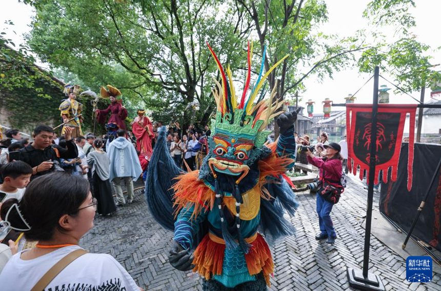 거리 퍼레이드 공연 중 목공 인형극 ‘장진주’(將進酒) [10월 17일 촬영/사진 출처: 신화사]