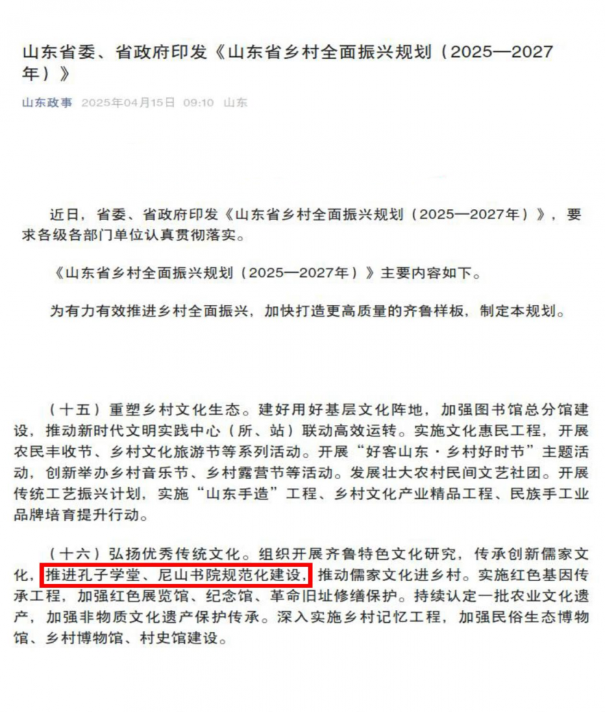 孔子学堂成为《山东省乡村全面振兴规划(2025-2027年)》重点品牌项目