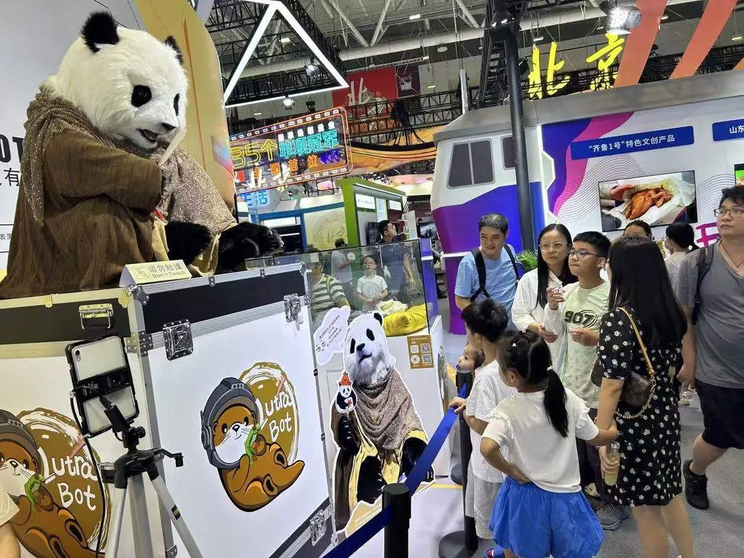 在文博会现场,一只毛发纤毫毕现的仿生机器熊猫,以憨态可掬的姿态与观众互动。它可以跟着人类的动作,做出瞪眼睛、吐舌头等动作细节。据悉,其头部安装了40个控制电机,能够通过传感器感知观众的情绪变化。这个由山东企业研发的“科技国宝”,印证着齐鲁大地文化创新能力的缩影——用最硬核的工业实力,演绎最柔软的文化表达。