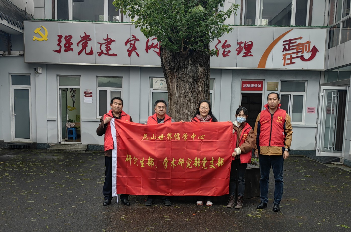 4月6日,尼山世界儒学中心(中国孔子基金会秘书处)研究生部学术研究部党支部和传播普及部党支部部分党员来到“双报到”社区——舜耕街道舜华社区开展志愿服务活动。