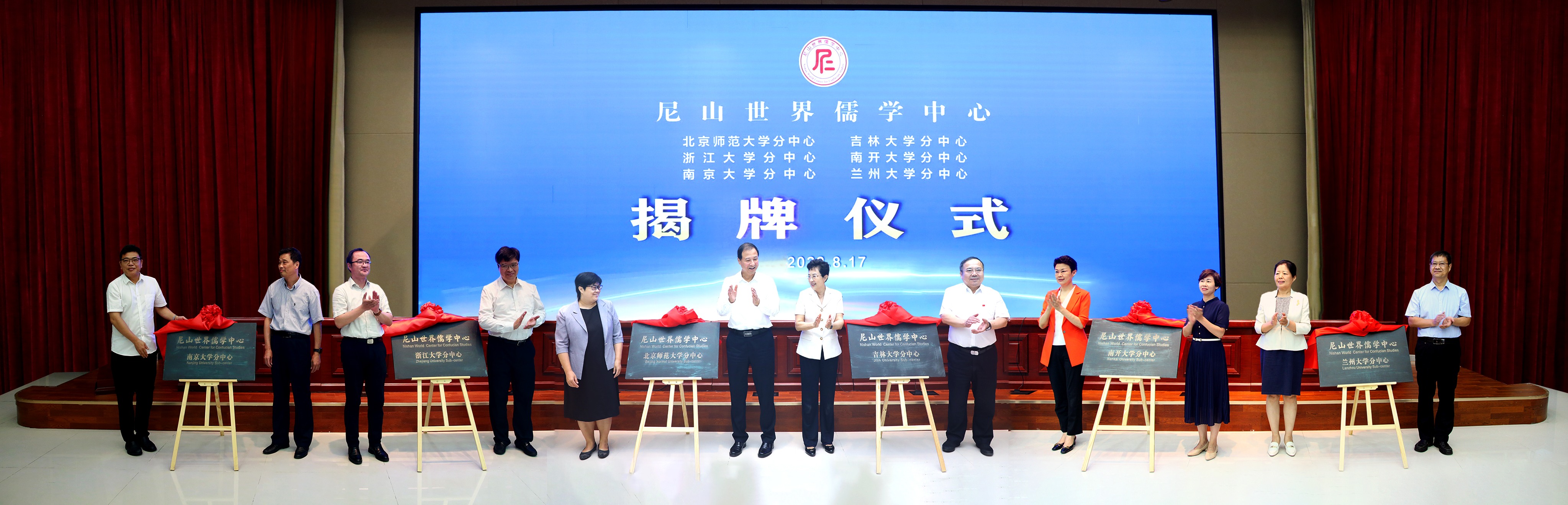 8月17日,尼山世界儒学中心分中心揭牌仪式在山东省邹城市举行。此次揭牌成立的是北京师范大学分中心、吉林大学分中心、浙江大学分中心、南京大学分中心、南开大学分中心、兰州大学分中心。教育部党组成员、副部长孙尧,尼山世界儒学中心理事会理事长、联合研究生院院长靳诺,中国人民大学校长、党委副书记、尼山世界儒学中心理事会常务副理事长、联合研究生院学术委员会主任林尚立,山东省副省长王桂英,教育部发展规划司一级巡视员楼旭庆,尼山世界儒学中心党委书记、副主任国承彦与北京师范大学党委副书记韦蔚、吉林大学党委副书记韩喜平、浙江大学党委研究生工作部副部长刘波、南开大学研究生院副院长邵庆辉、南京大学哲学系副主任孙乐强、兰州大学党委研工部部长陈彦通共同为分中心揭牌。