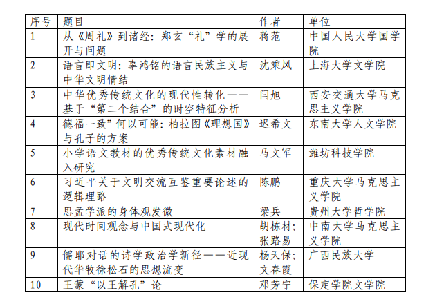“文化传承发展与建设中华民族现代文明”学术研讨会暨第十届全国儒学社团联席会议青年学者征文 活动评审结果公示