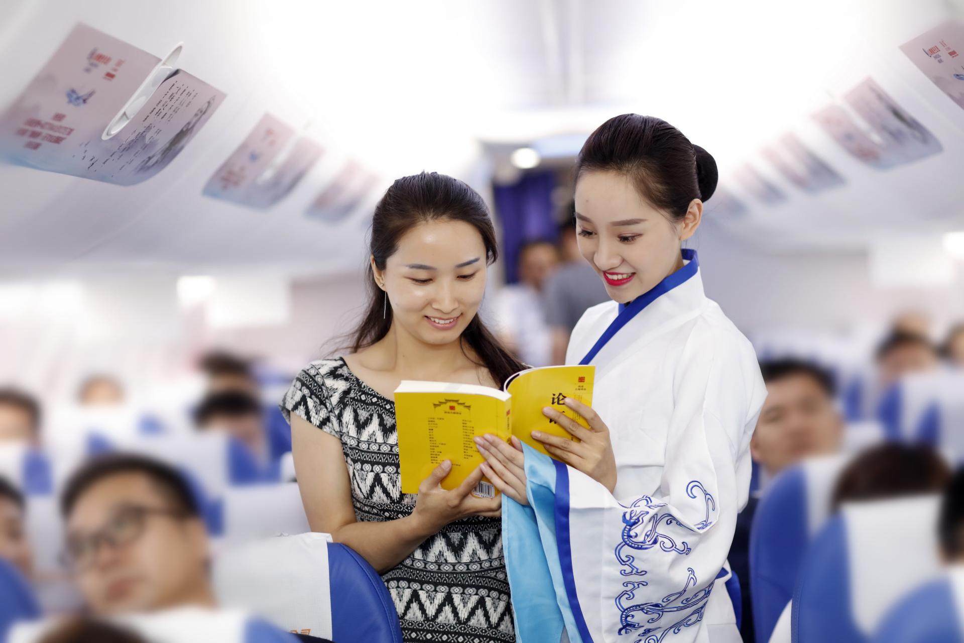 尹文介绍说:“我们客舱服务部开展《论语》的全员诵读,同时,我们也将《论语》带到了万米高空,张贴于机舱内壁,实现了文化宣传的广泛性和持久性。同时在航班上播放《空中孔子学堂》视频节目,让旅客深刻地体会到国学之美。”