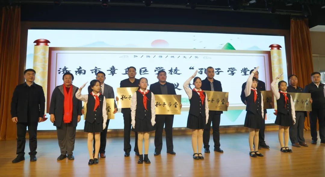 为全面贯彻落实习近平文化思想,进一步推动孔子学堂在学校扎根推广、健康运行,3月13日,章丘区学校“孔子学堂”授牌仪式在东山小学举行。