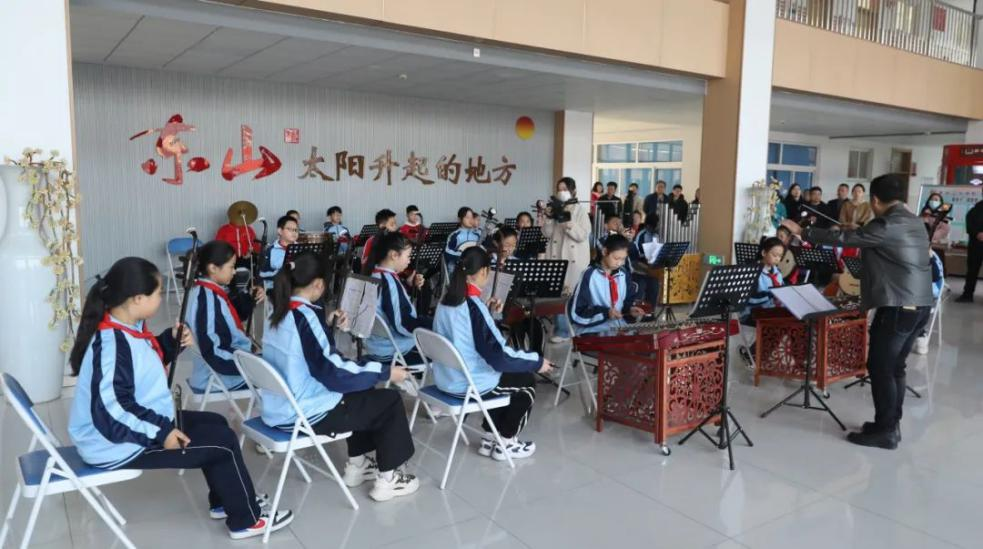 授牌仪式前,与会人员参观了东山小学校园文化建设并观摩了民乐团演奏。